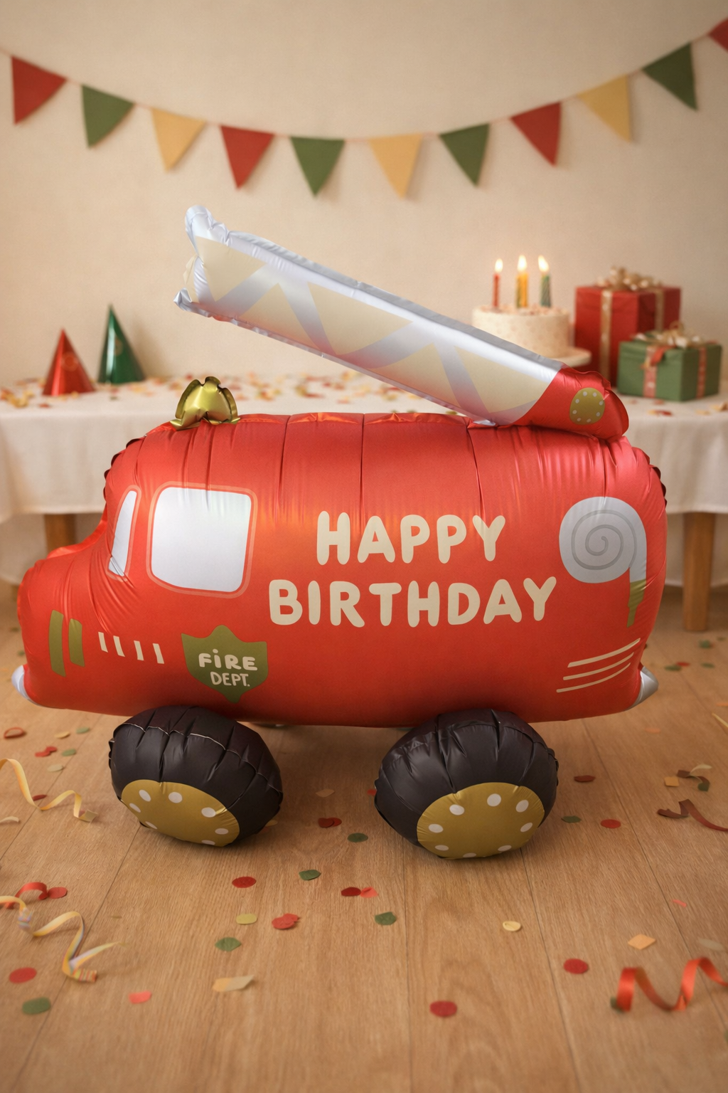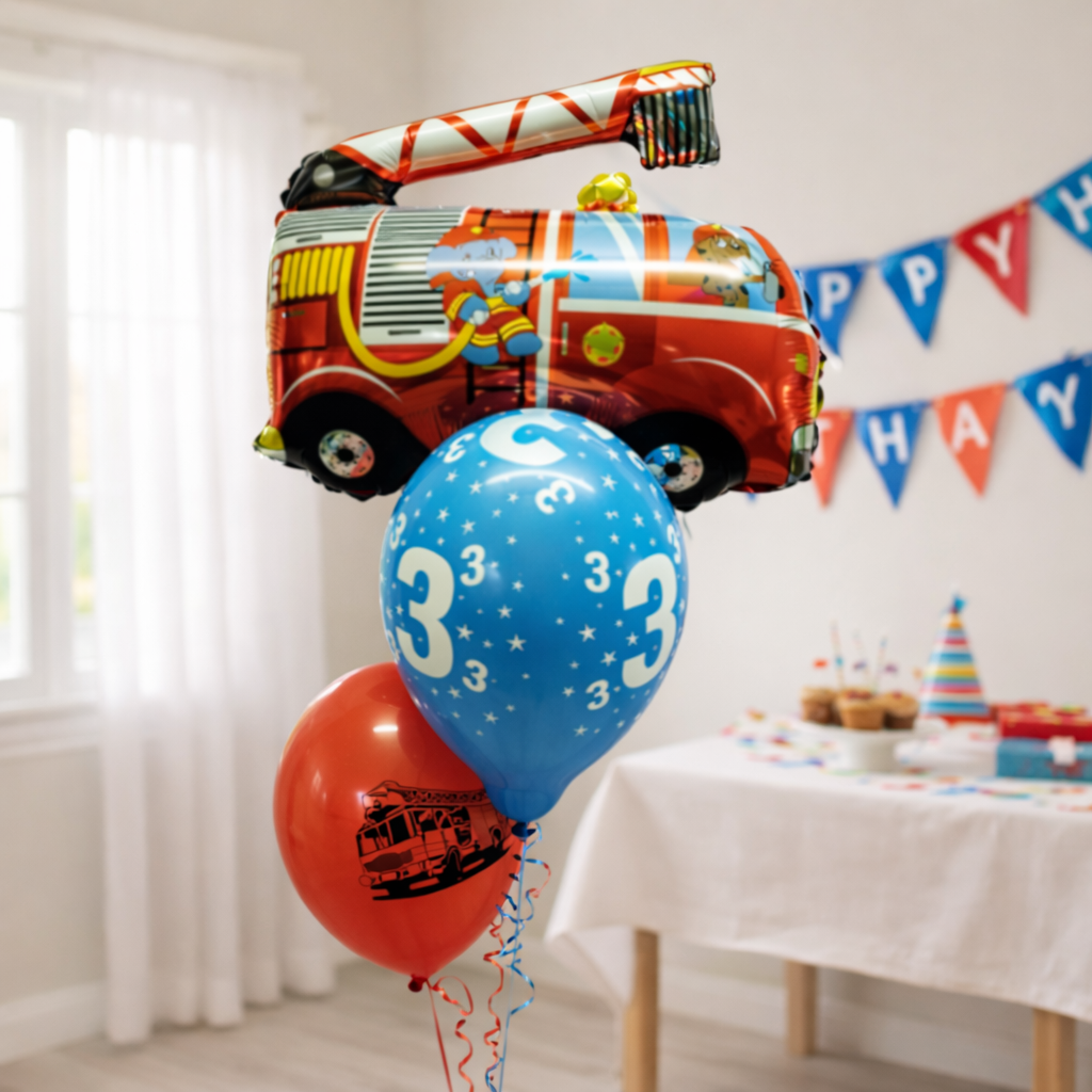 Feuerwehr mit Ballons zum 3. Geburtstag