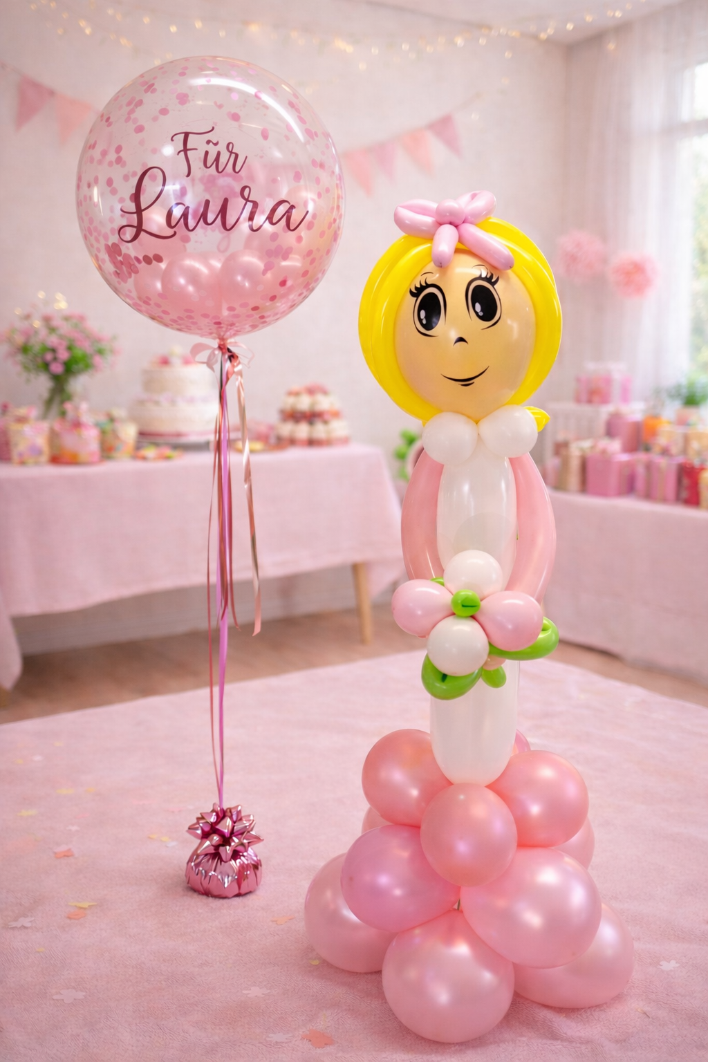 Rosa Latexballon als Tischdekoration
