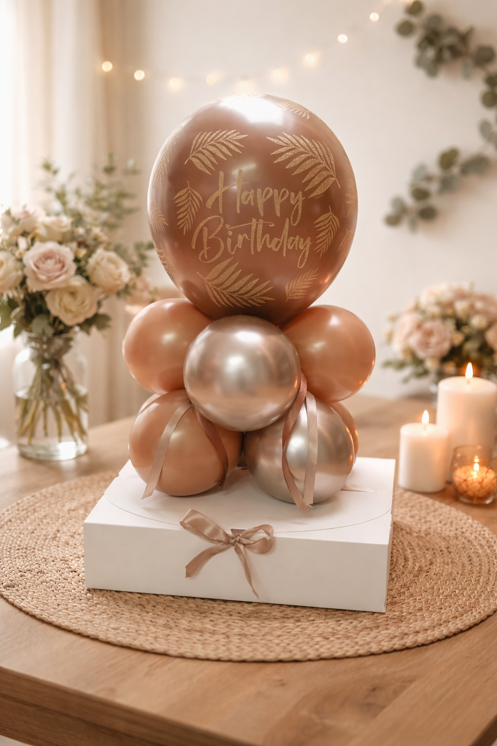 Happy Birthday Ballon in Rosengold und Braun
