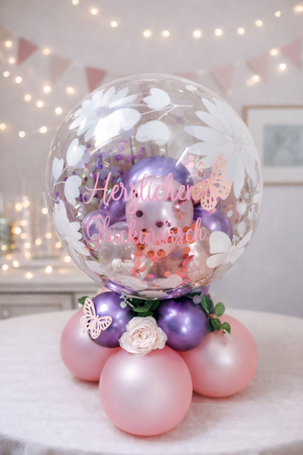 Tischballon Lila mit Rosa
