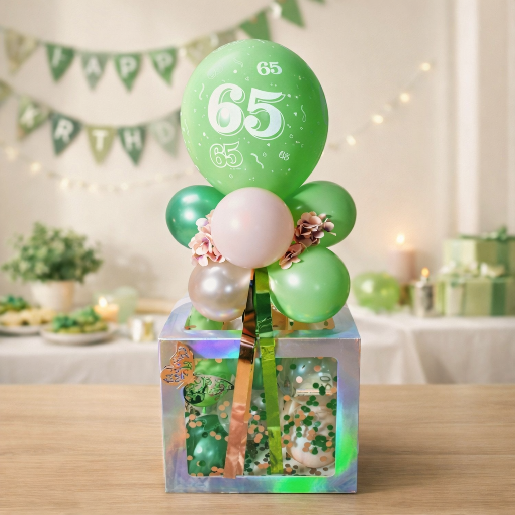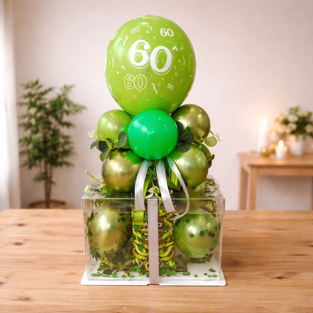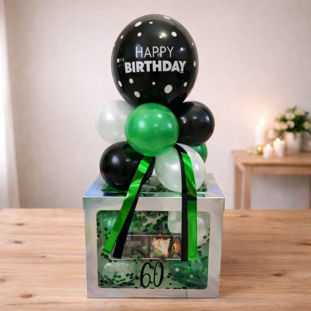 Ballon Box mit Zahl zum Geburtstag in Grün