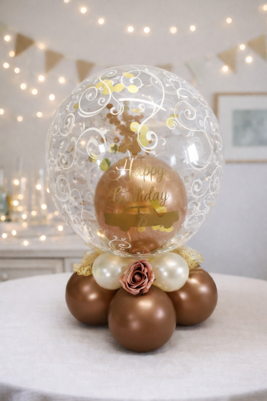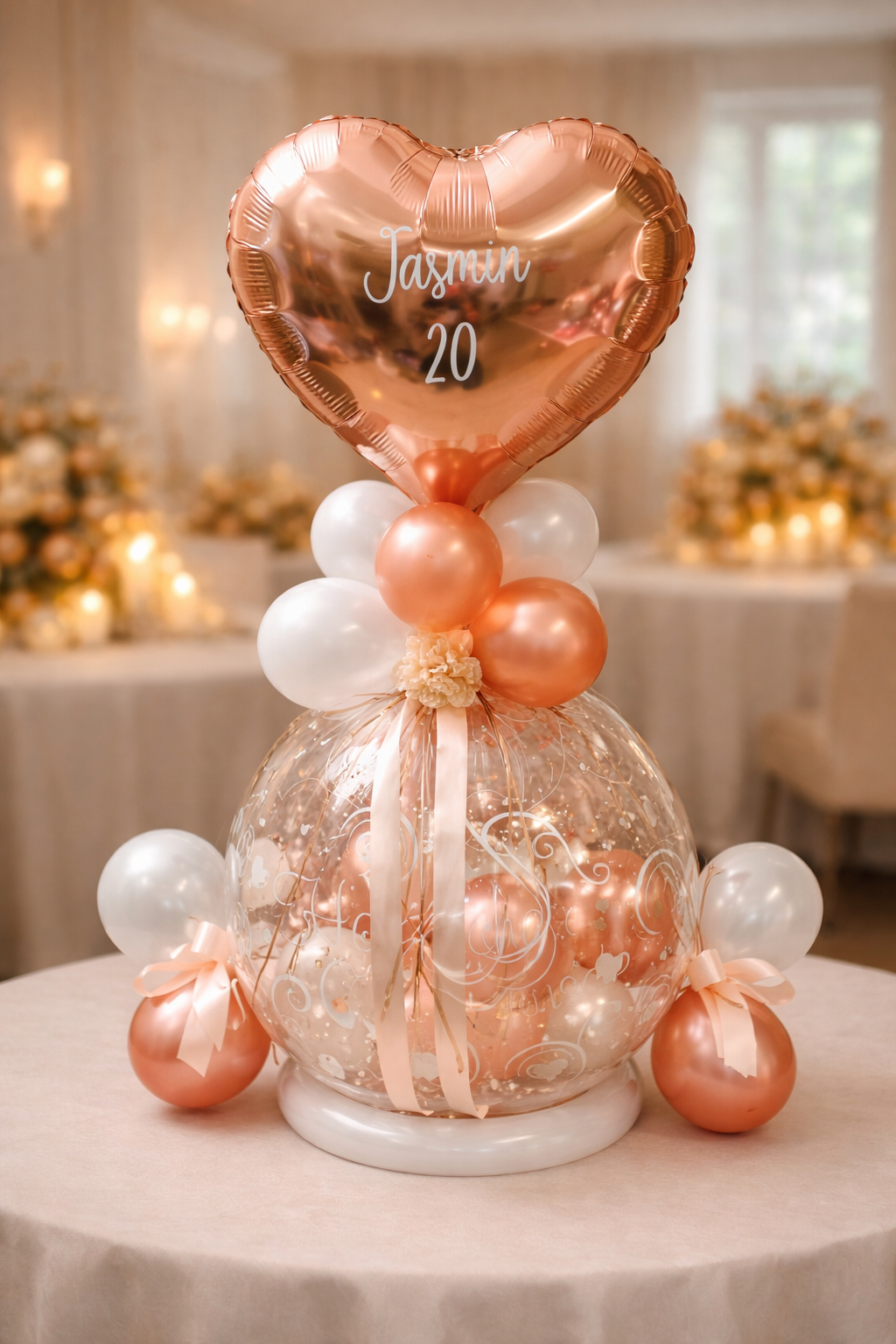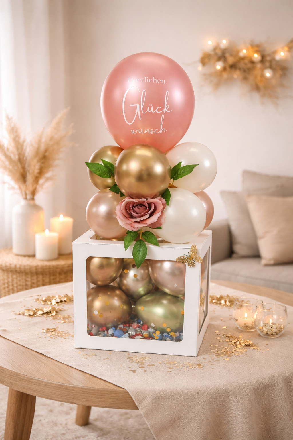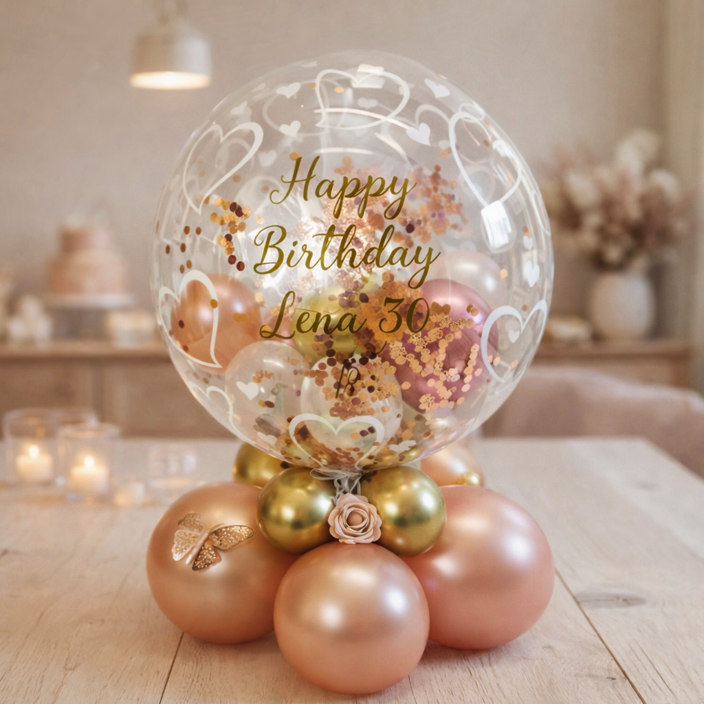 Konfetti Ballon in Rosengold und Gold für den Tisch
