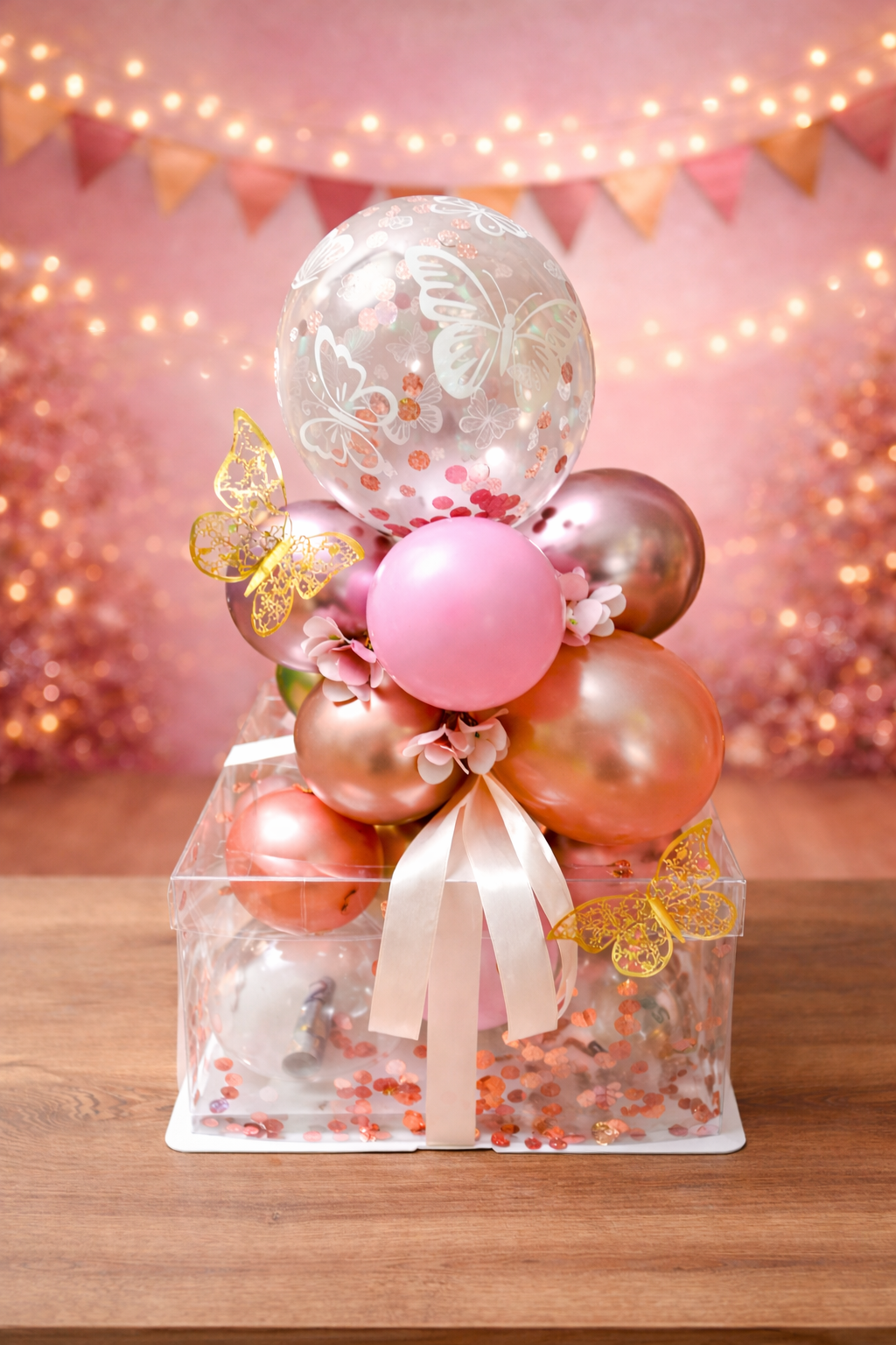 Geschenkballon in Gold und Rosa