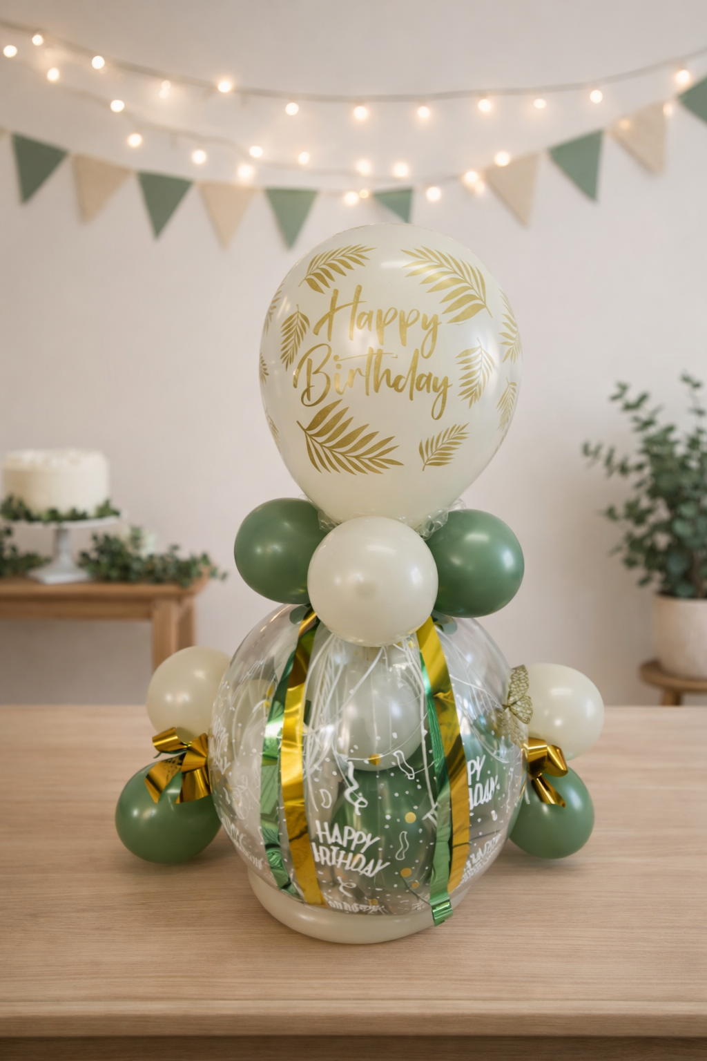 Geschenkballon in den Farben Eukalyptus und Sand