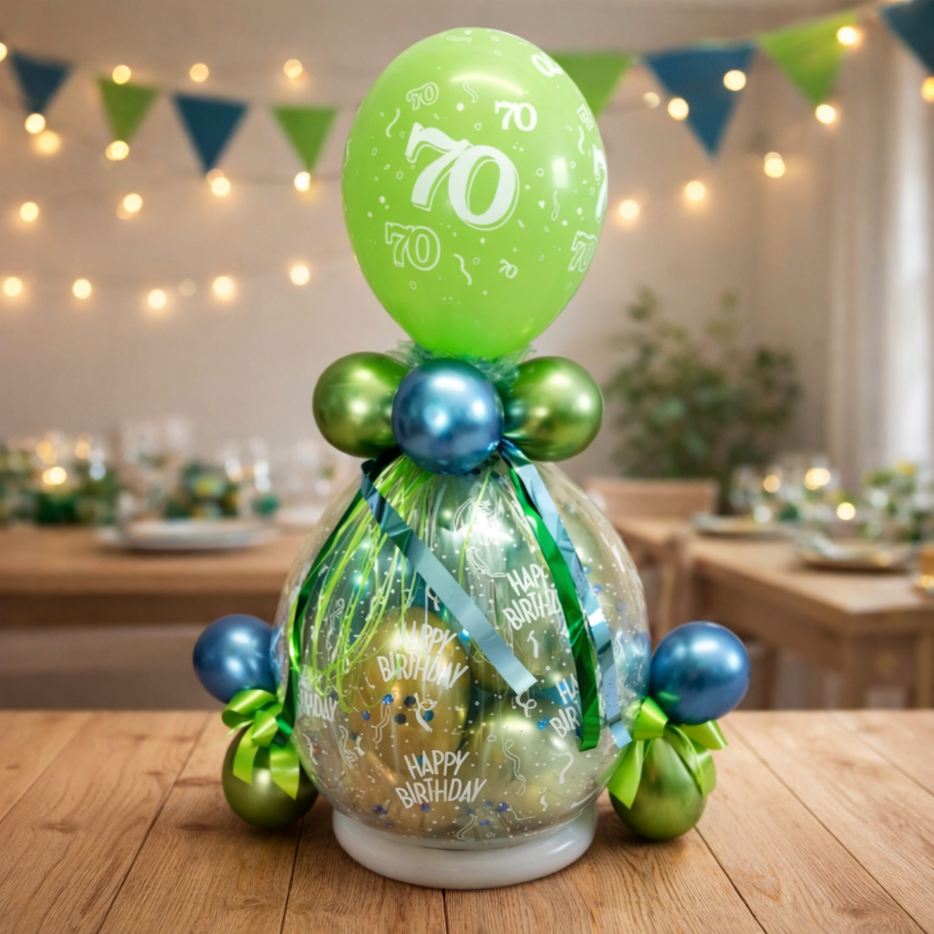 Geschenkballon 70. Geburtstag in Grün und Blau