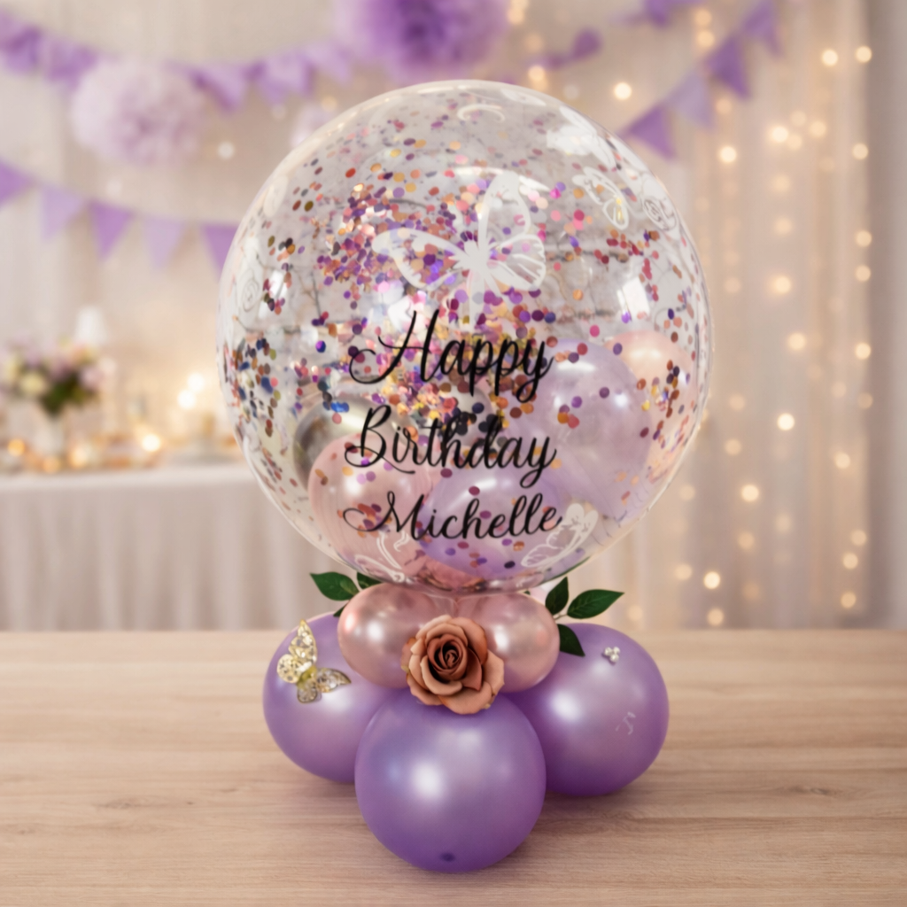Tischballon mit Namen in Lila