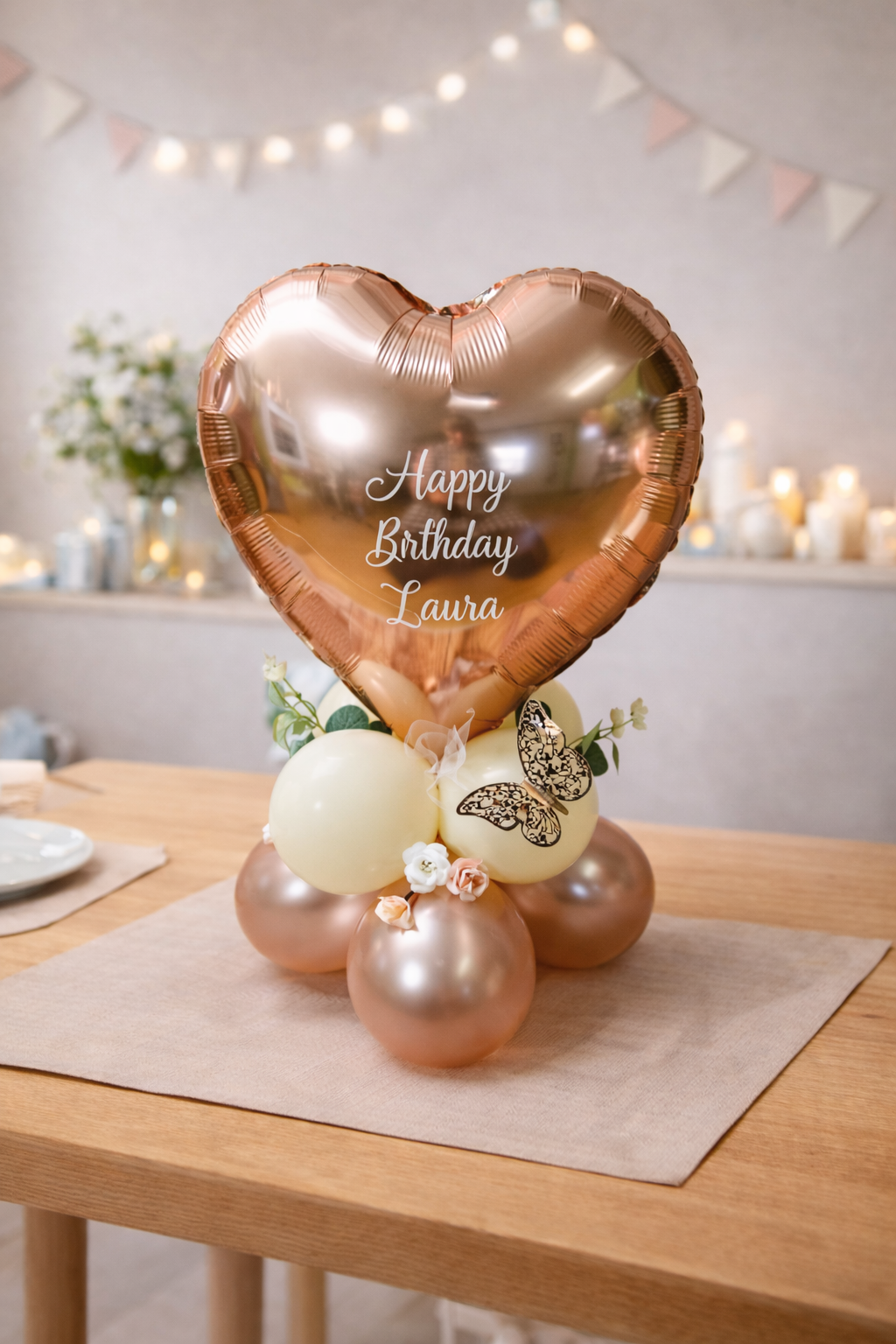Geschenkballon in Rosa und Creme mit Namen