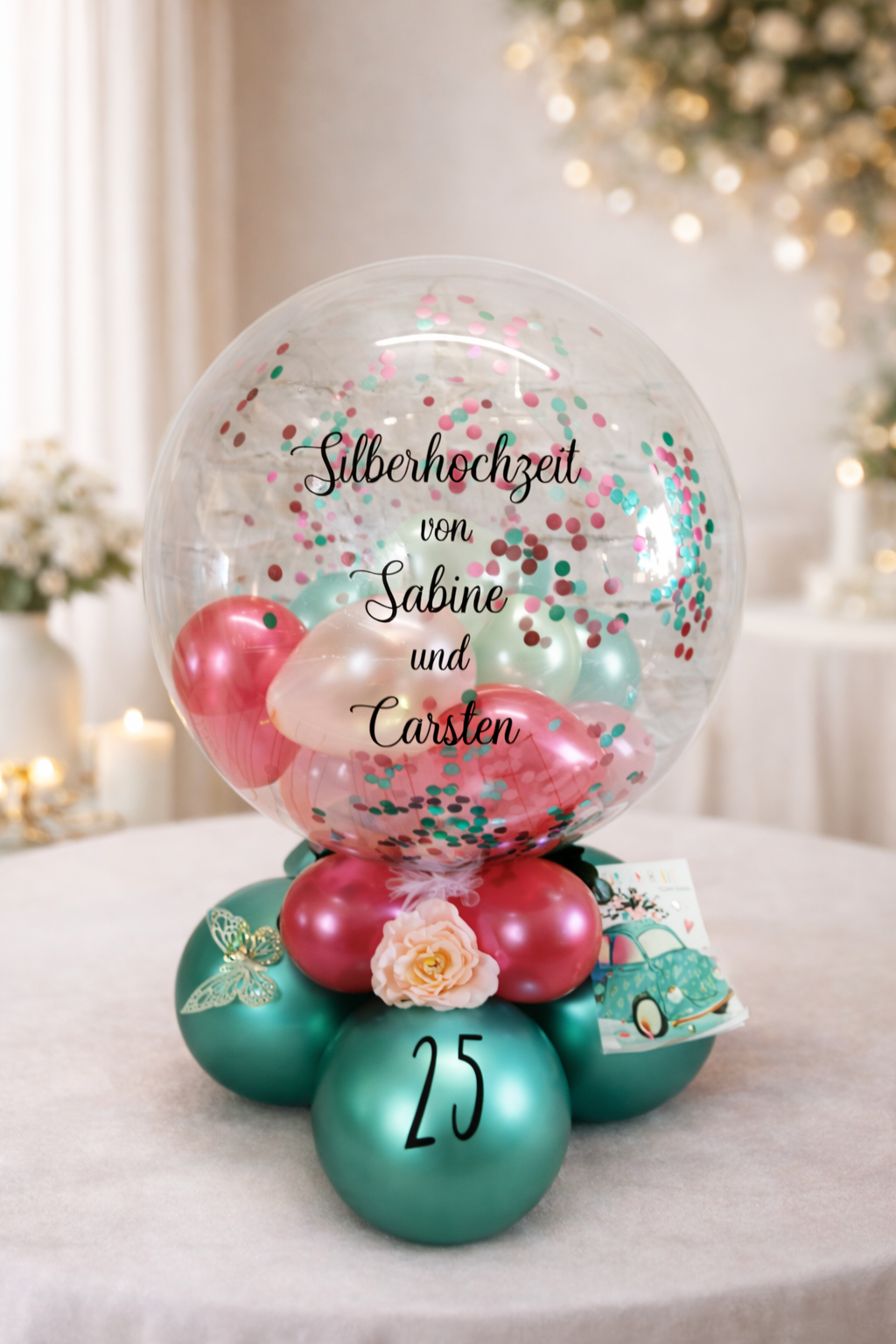 Der Ballon kann personalisiert werden. Der Ballon kann mit Kleinigkeiten und Geld befüllt werden.