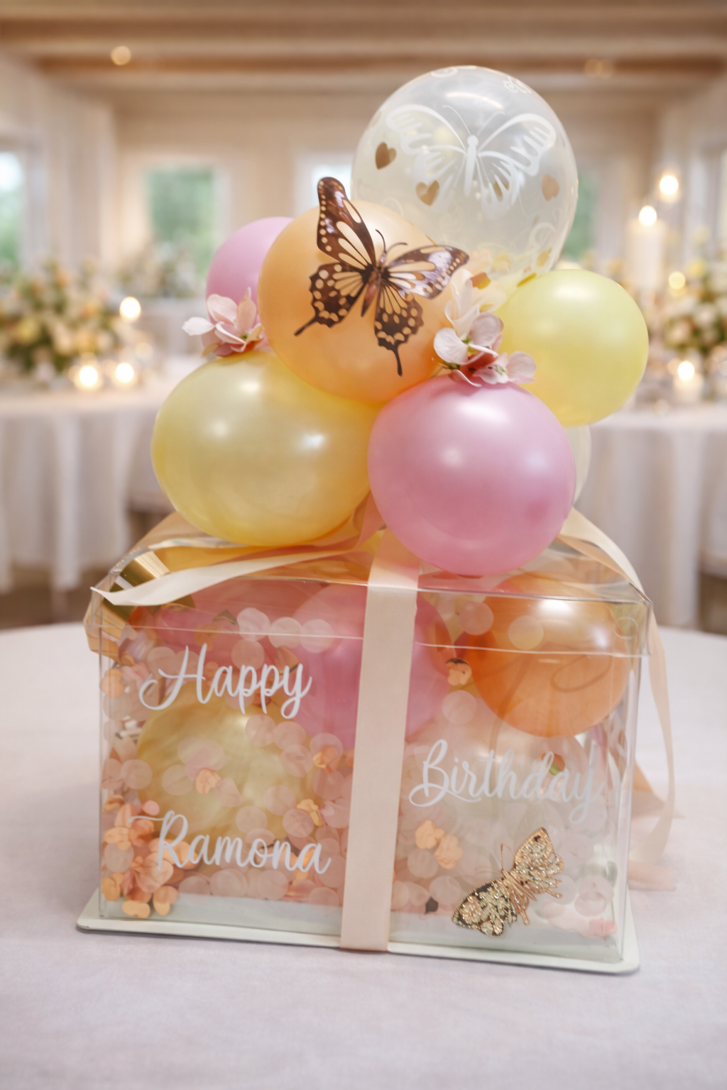 Größe der Box ohne Ballons 20cm x 20cm.
