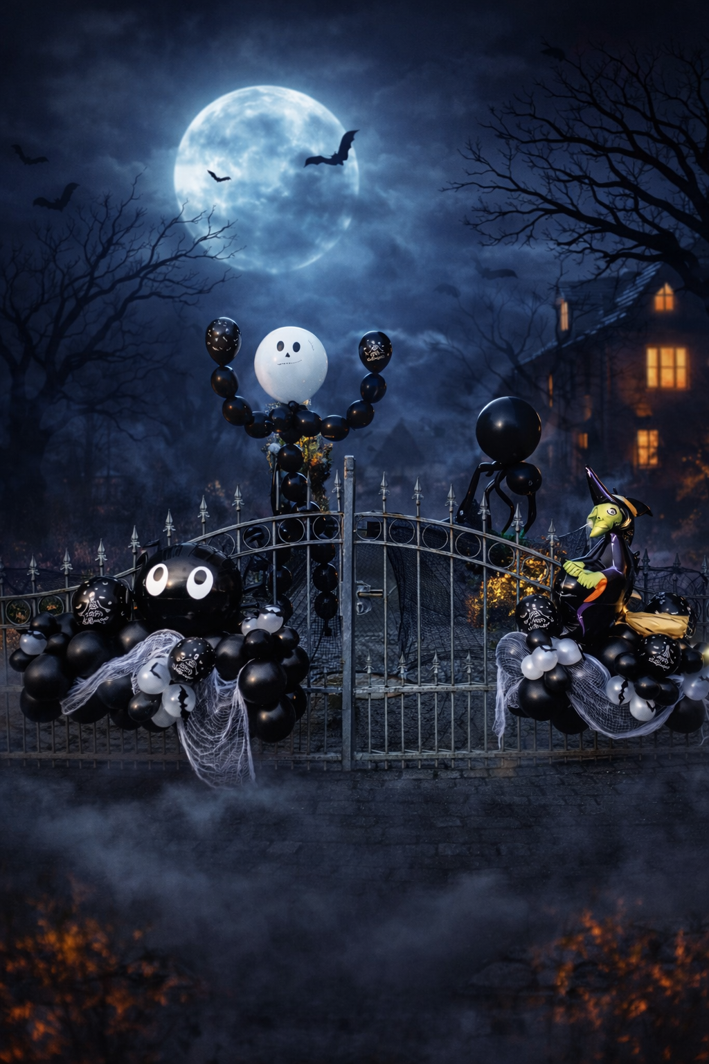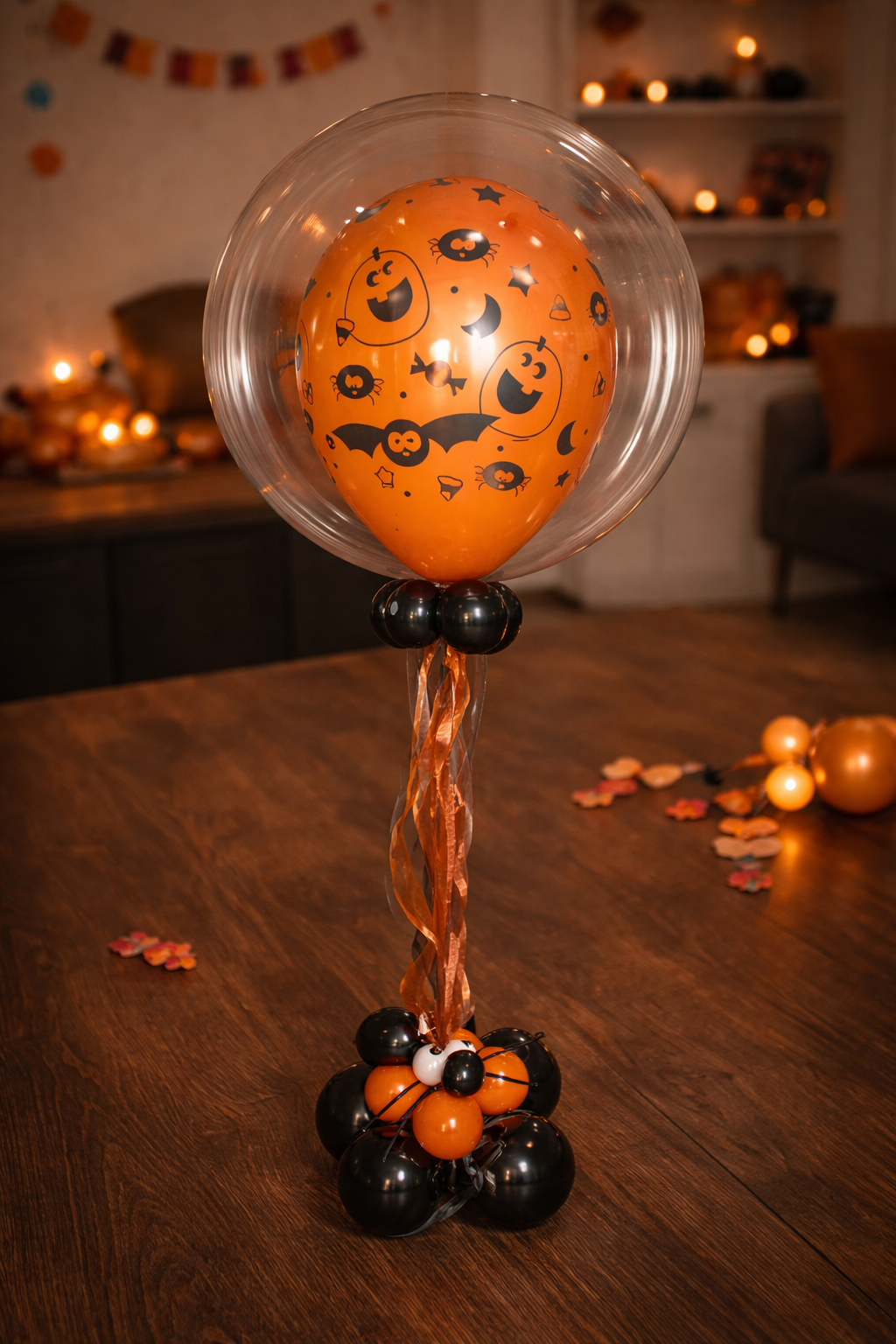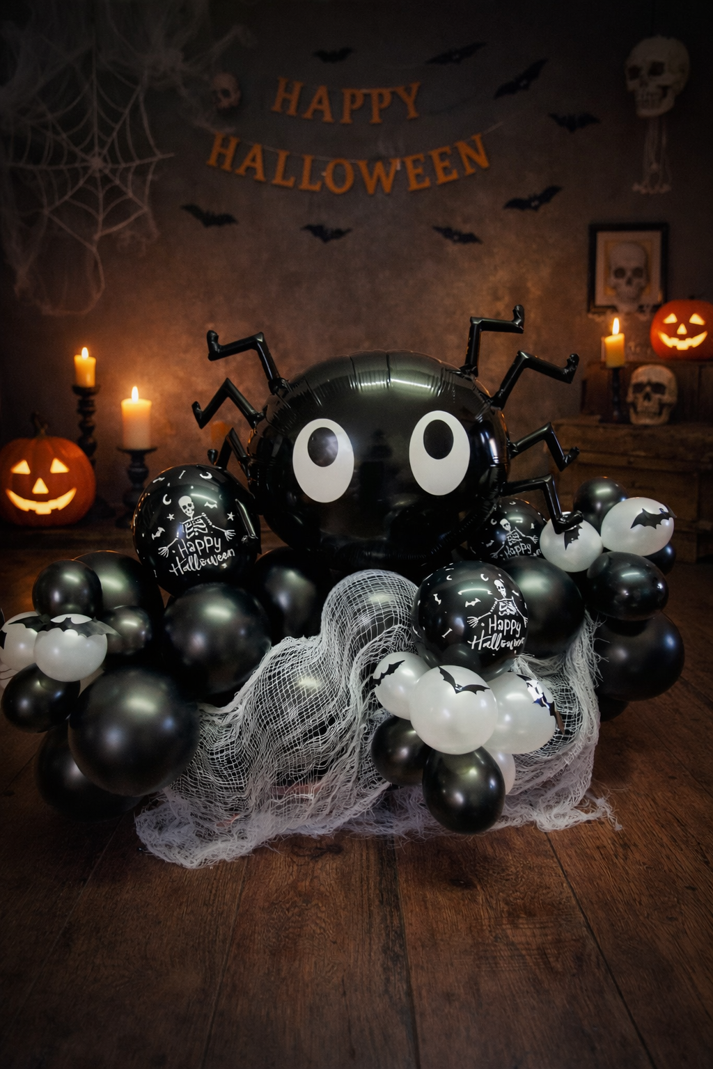 Dekoration mit Ballon und kleiner Spinne.