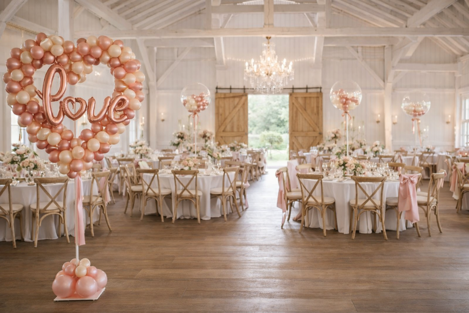 Ballonbogen mit einzelnen Heliumballons in Rosegold