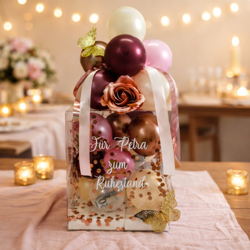 Die Box kann mit kleinen Geschenken befüllt werden.