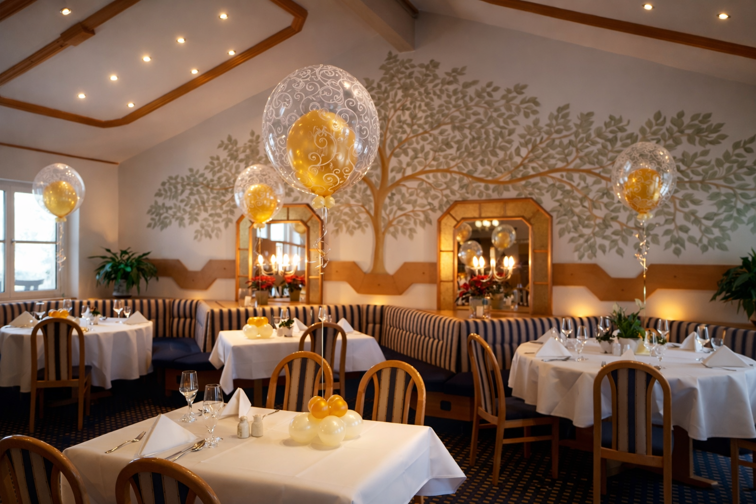 Die Ballons sind Latexballons für die Decke und Doppelballons für die Raumdekoration.