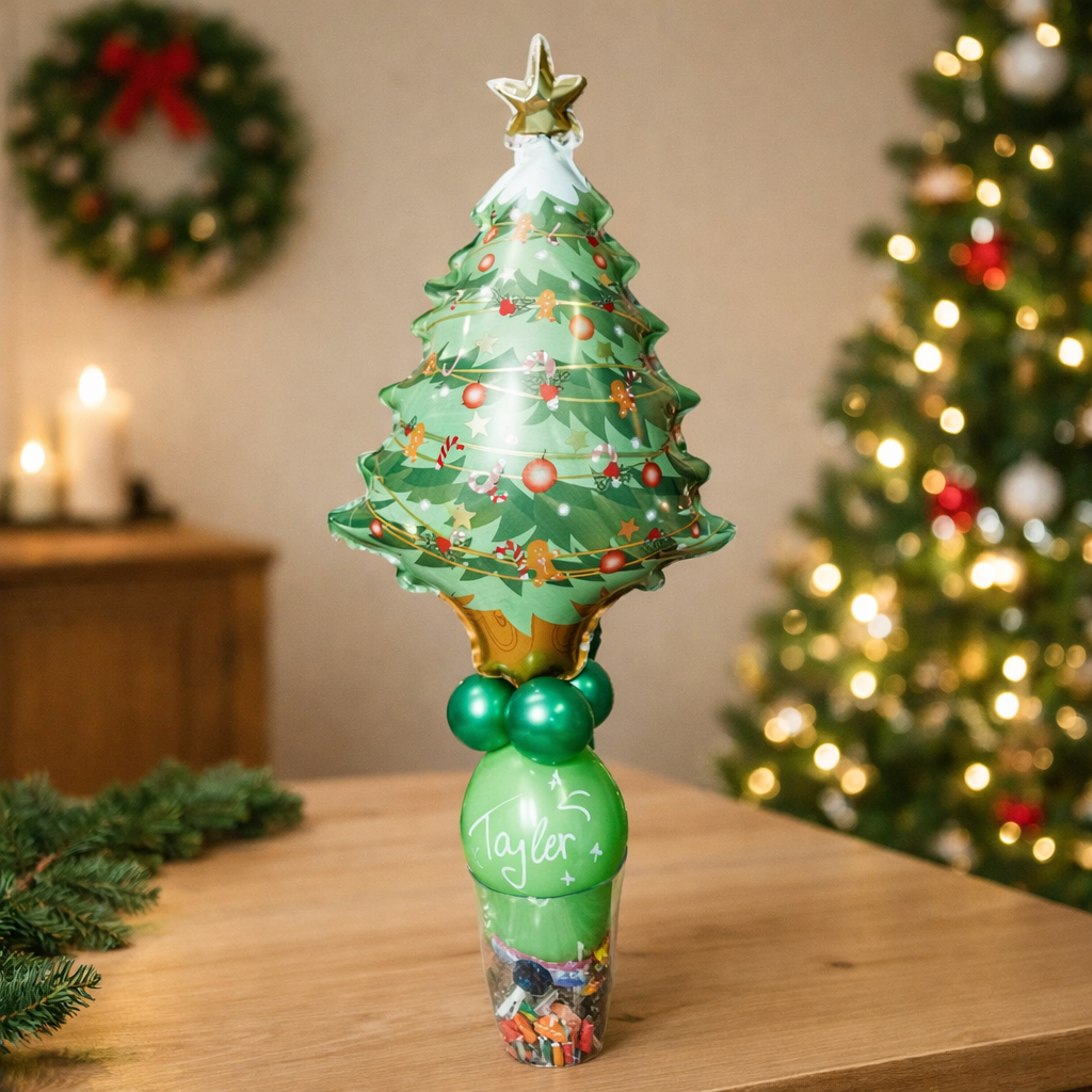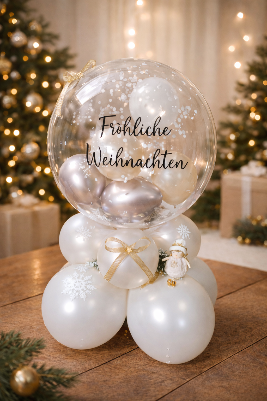 Geschenkballon zu Weihnachten mit Schneedeko