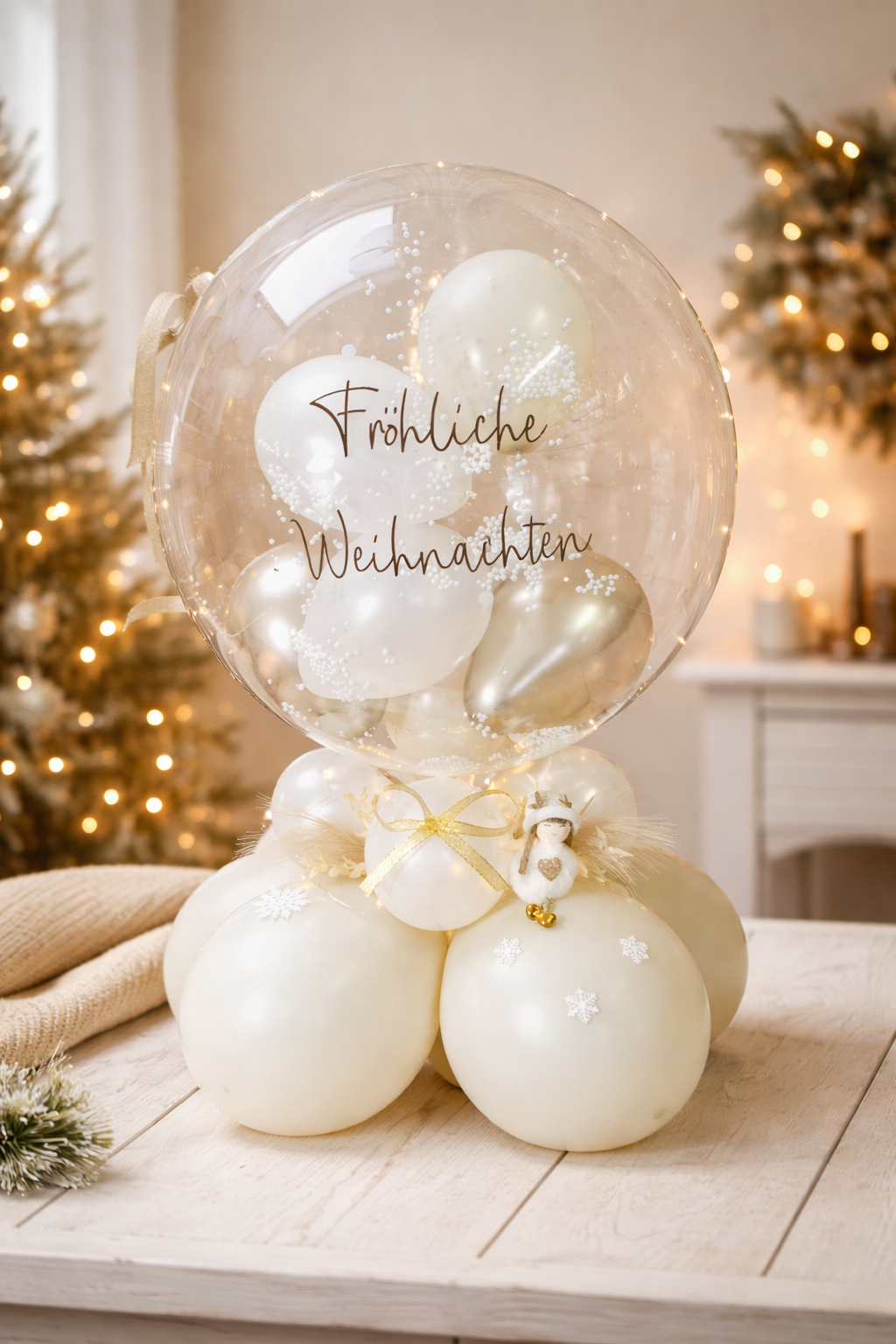 Weihnachtsballon in Weiß und Beige mit Licht